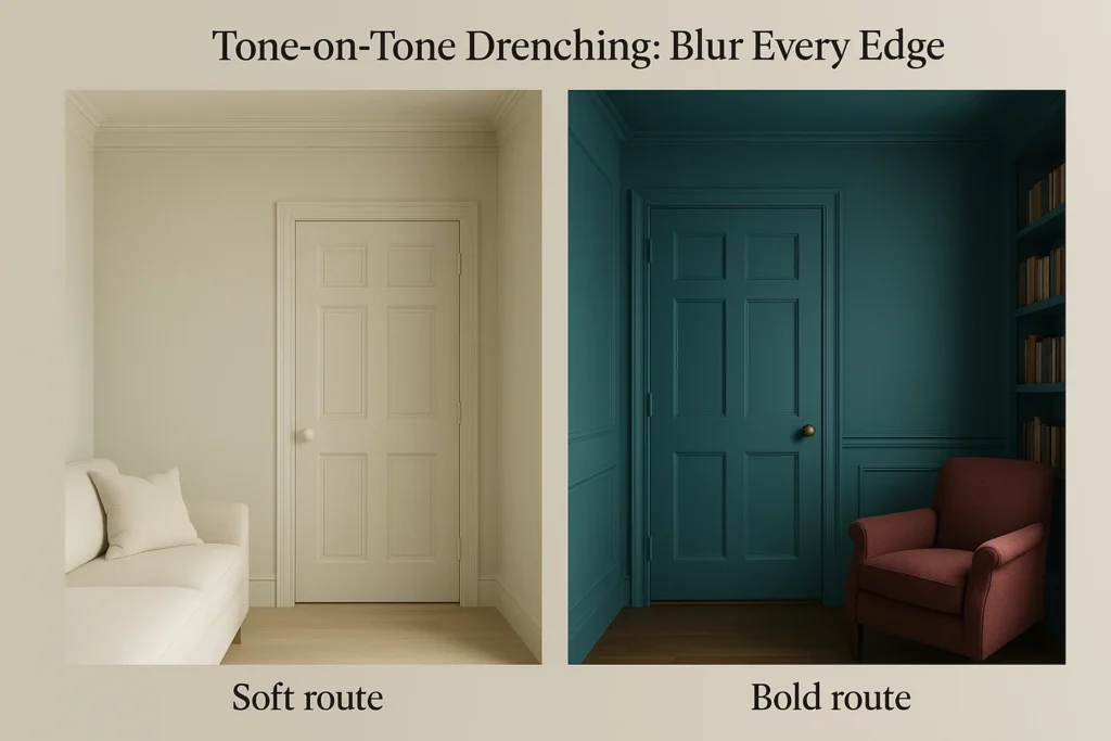 Tone-on-tone drenching—painting the walls, trim, and ceiling in one continuous hue—is one of 2025’s most transformative small-space trends. By eliminating contrast, you erase lines that mark where one surface ends and another begins. The result is a seamless, flowing space that feels taller and calmer.