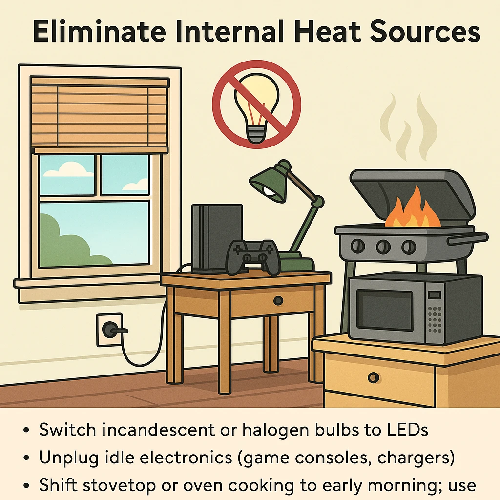 Reducing these internal heat sources can make a surprisingly big difference, especially in small rooms where every degree counts.