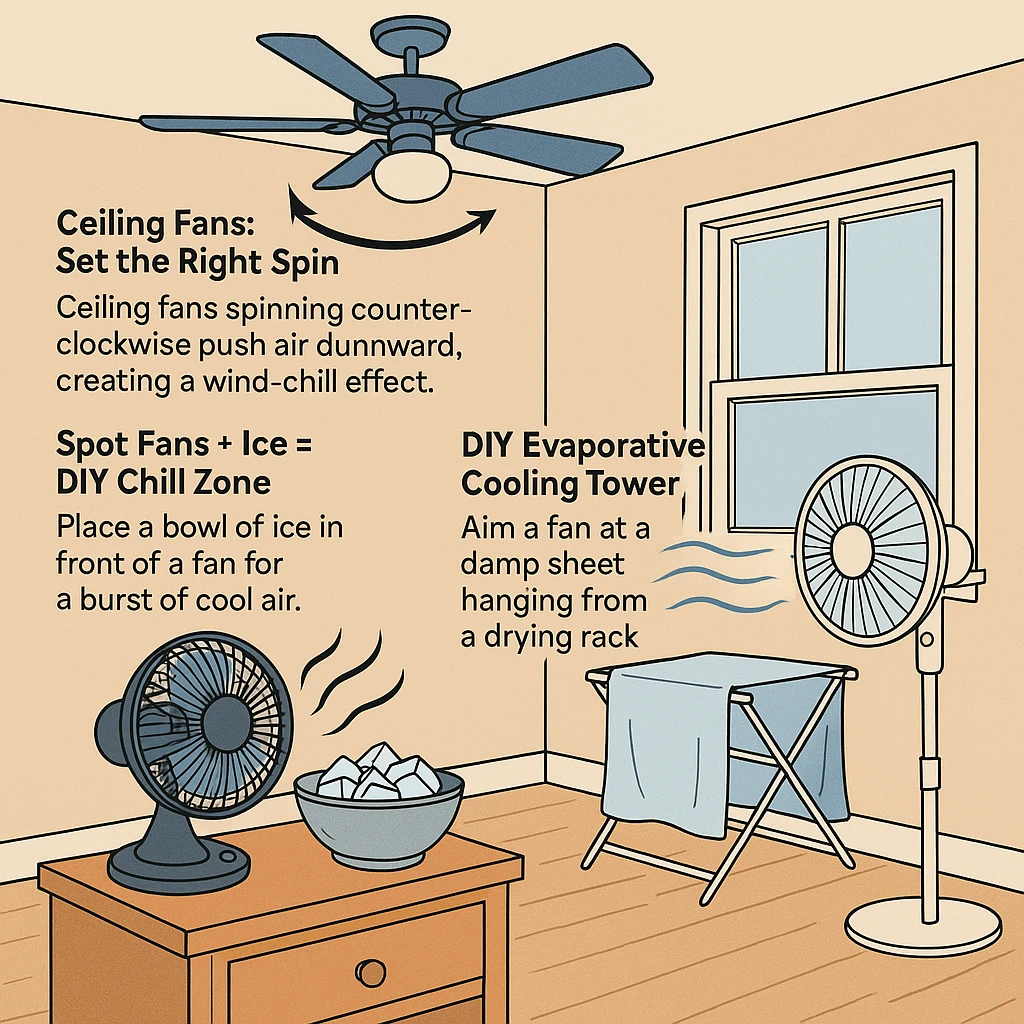 ▸ Try a DIY Evaporative Cooler (Dry Climates Only)