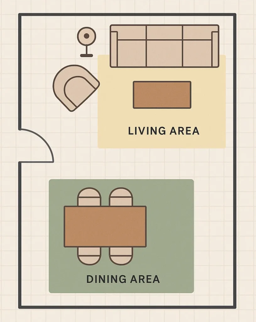 Once the zones are set, you can start layering in elements like rugs, lighting, and furniture to define them.